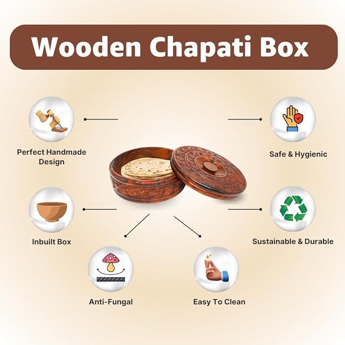The Wooden Casserole is a beautifully handcrafted kitchen and dining accessory designed to keep rotis, parathas, puris, and other foods warm for longer. Made from premium seasoned wood, it features a food-safe insulated inner layer that maintains heat while preserving freshness.